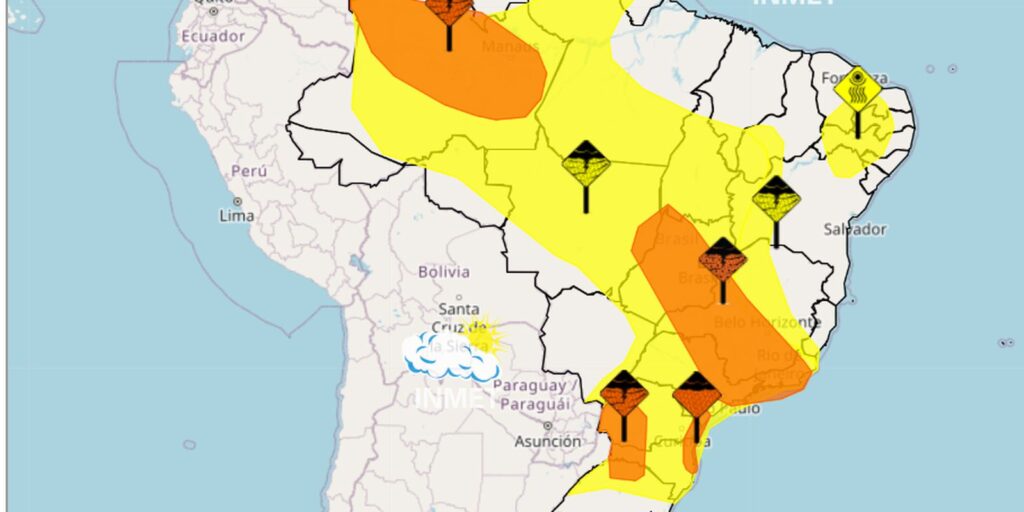 Inmet alerta para chuvas intensas de norte a sul do Brasil